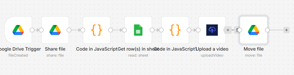 Wyobraź sobie, że Twoje wideo zarządzają się same. Ten system automatycznie wykrywa nowe pliki na Google Drive, pobiera z Google Sheets metadane, przetwarza je JavaScriptem, a potem rozsyła gotowe wideo na docelowe platformy. Na koniec sprząta po sobie, przenosząc pliki do archiwum. Koniec z 'gdzie to jest?' i ręcznym wrzucaniem – 100% porządku, 100% automatyzacji.