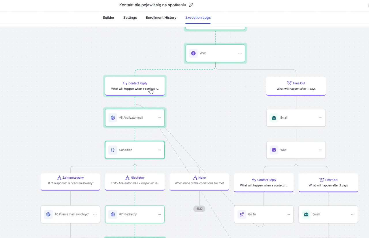 Inteligentny System Odzyskiwania (No-Show): Zaawansowana, 4-dniowa sekwencja follow-up dla osób, które nie stawiły się na spotkanie. AI analizuje treść odpowiedzi leada, decydując o automatycznym przełożeniu terminu lub archiwizacji kontaktu w CRM.